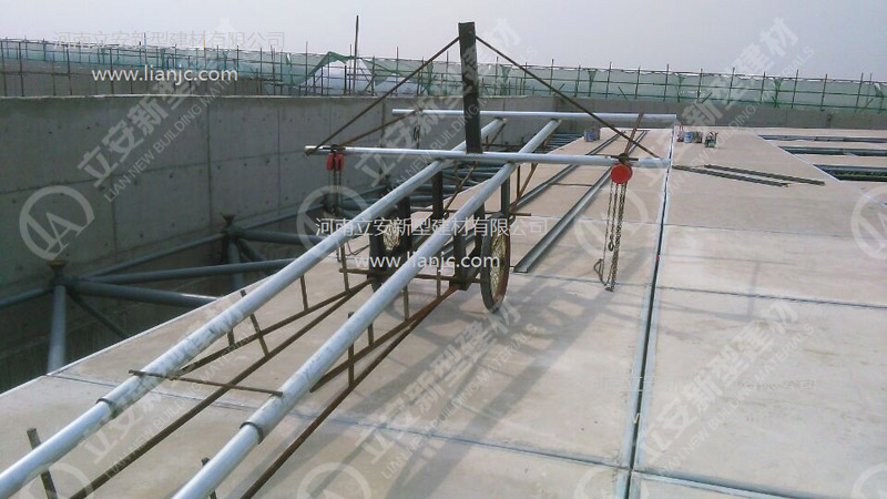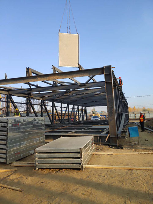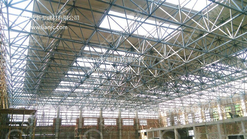 鋼骨架輕型板適用于輸煤棧橋、公共民用等建筑圍護屋面、樓面、墻面.鋼骨架輕型板由輕型鋼骨架、冷拔鋼絲網(wǎng)、改性水泥珍珠巖復合芯材(專有技術)、復合抗?jié)B耐磨涂層(專有技術)組成.鋼骨架輕型板集輕質、承重、節(jié)能、防火、隔聲、泄爆、抗震等功能于一體,既保持了傳統(tǒng)鋼筋混凝土構件安全度高、使用壽命長的優(yōu)點,又滿足了現(xiàn)代建筑對輕質、節(jié)能、環(huán)保的要求。